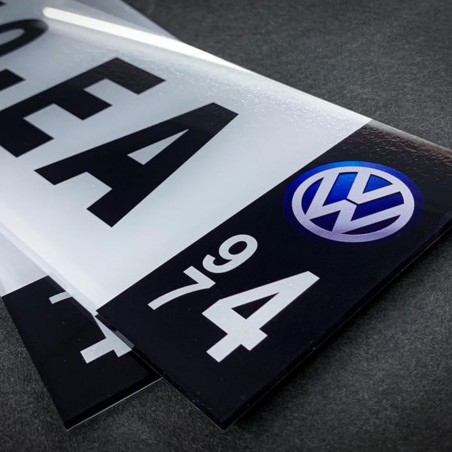 Chaque ensemble comprend deux plaques de haute qualité en PMMA, avec une épaisseur de 3 à 4 mm, offrant une excellente durabilité. Vous pouvez personnaliser les plaques avec un texte sous l'immatriculation selon vos préférences. Le kit est également fourni avec 4 rivets pour une installation facile.