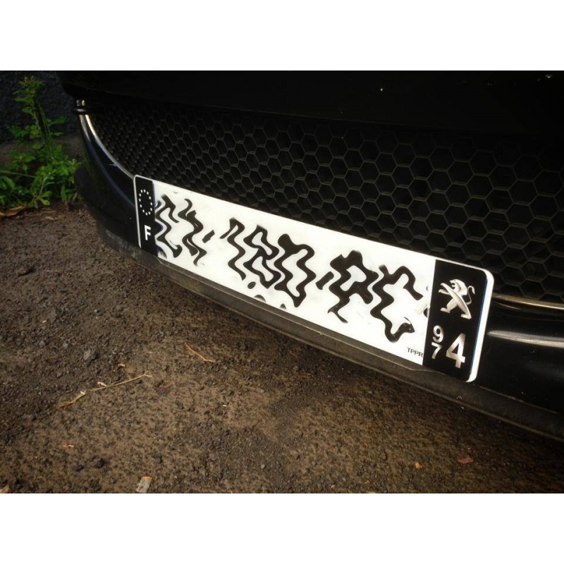 • Plaque immatriculation avec contour blanc.